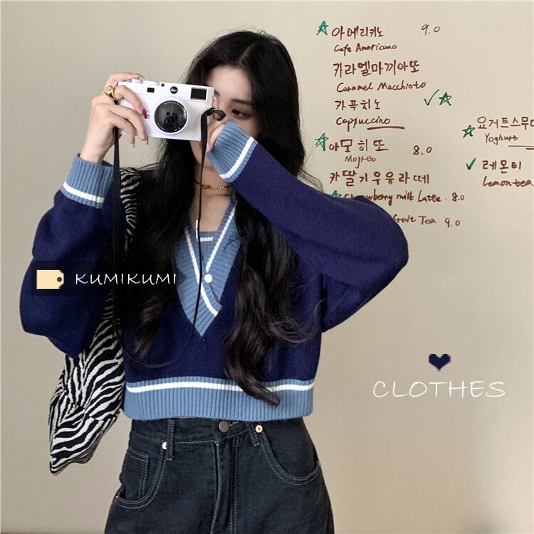 ルーズVネックセーター ブラウス レディーススプリングカラーショートプルオーバー ロング 春物 kumikum30794538233