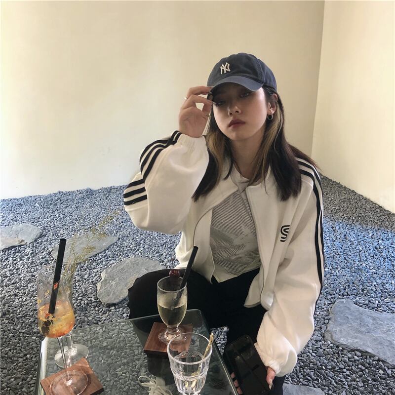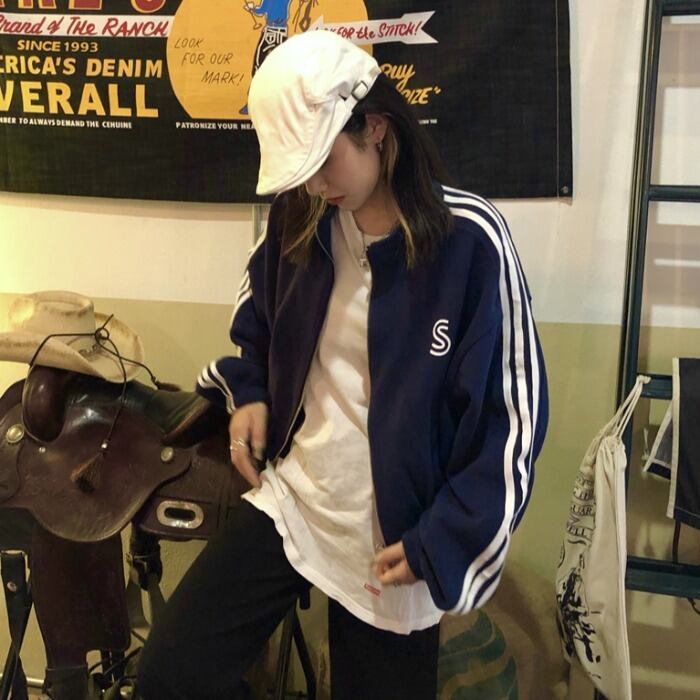 ルーズストライプショートジャケット レディースオータムカジュアルトップス ロング 秋物 kumikum32325410547
