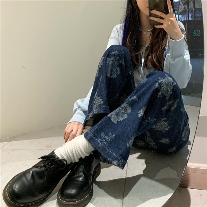 スタンダードプリントパンツ ウィンターハイウェストウェストカジュアル レッド レトロ 冬物 kumikum55690271471