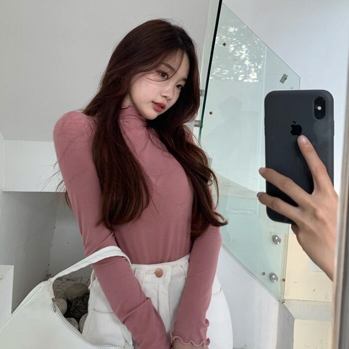 カラーソリッド シャツ オータムスリムプルオーバー Tシャツ ロング 秋物 ソリッドカラー kumikum13489982498