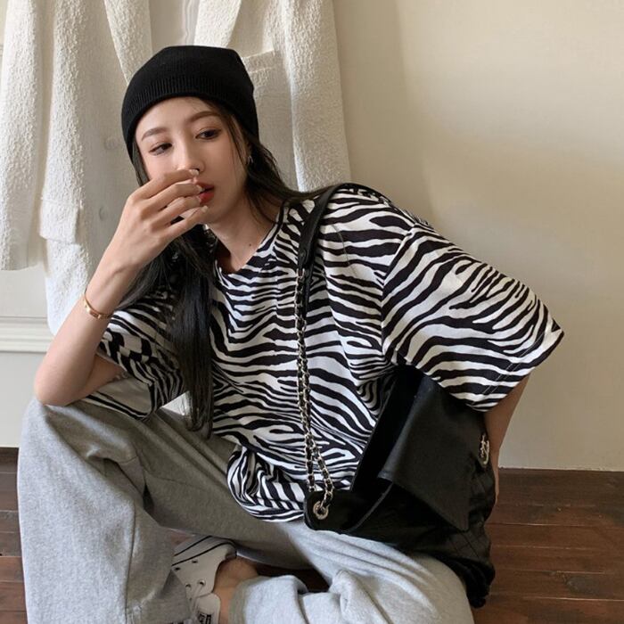 レッドパターンTシャツ シャツ サマースタンダードトップス ラウンドネックルーズ レトロ 夏物 Oネック kumikum77609503246