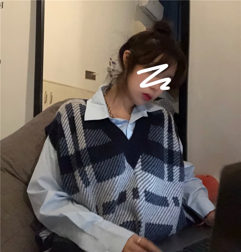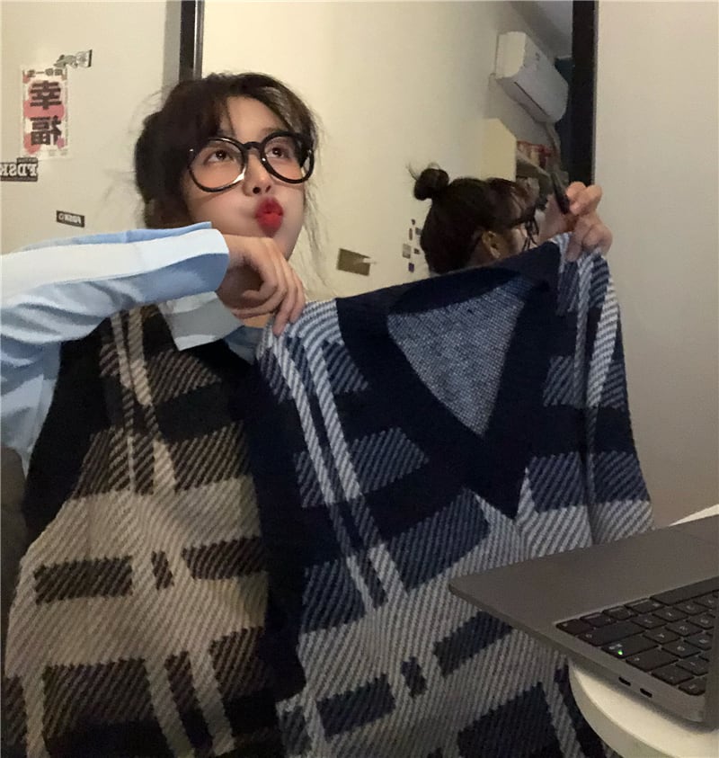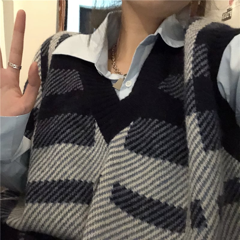 スタンダードVネックニットプルオーバー セーター スプリングルーズトップス レトロ 春物 kumikum98424221348