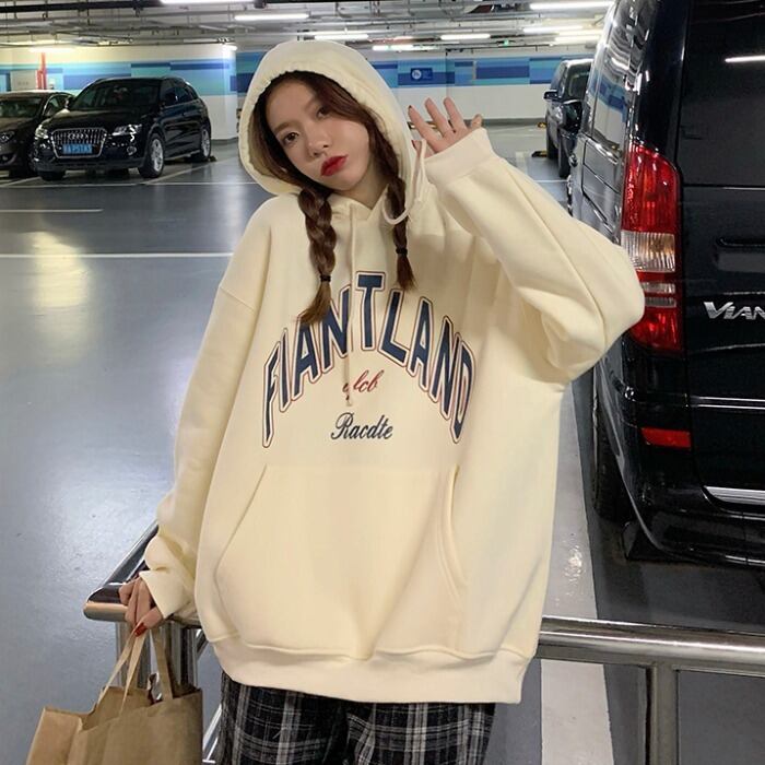 プリントフードセーター ジャケット レディースオータムウィンタールーズプルオーバー トップス ロング 秋物 冬物 kumikum82540966208