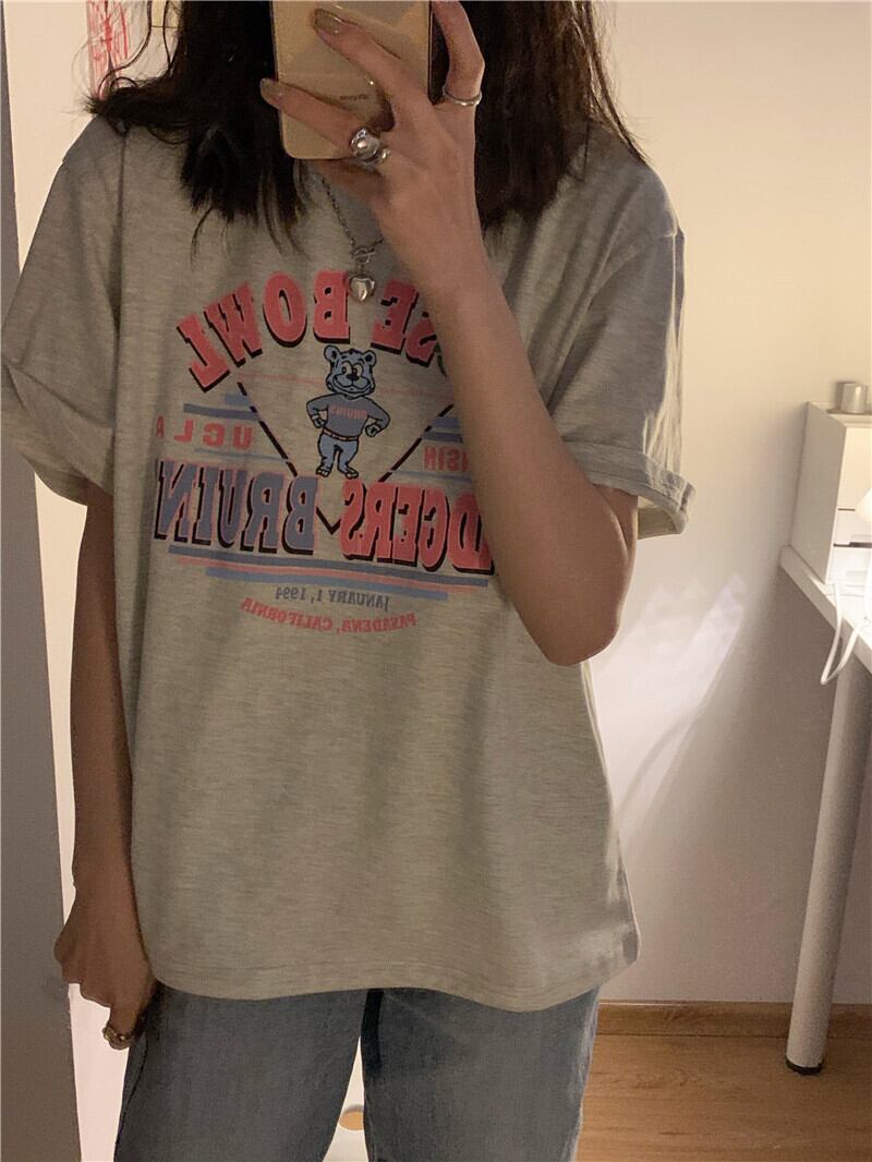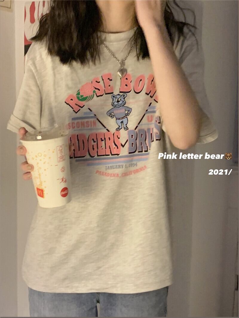 プリントTシャツ シャツ スプリングルーズラウンドネックプルオーバー トップス 春物 Oネック kumikum62062054123