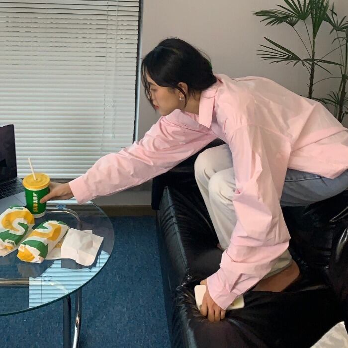 シャツ トップス スプリングスタイルルーズ ロング ピンク 春物 kumikum26477896462