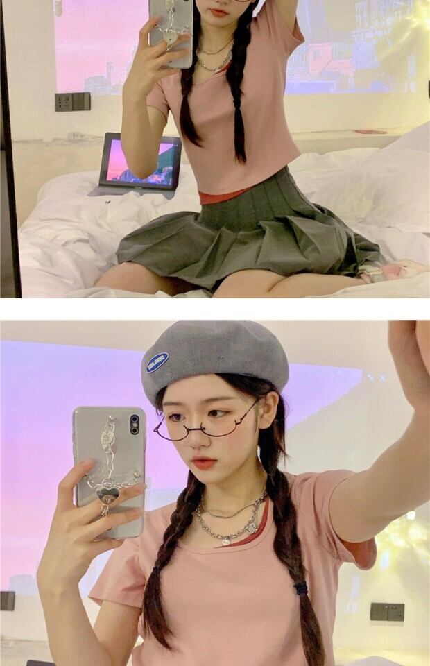 スタイルショートTシャツ サマーハイウェストプリーツスカート 夏物 kumikum17926871519
