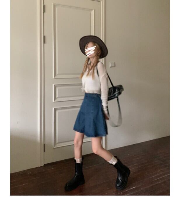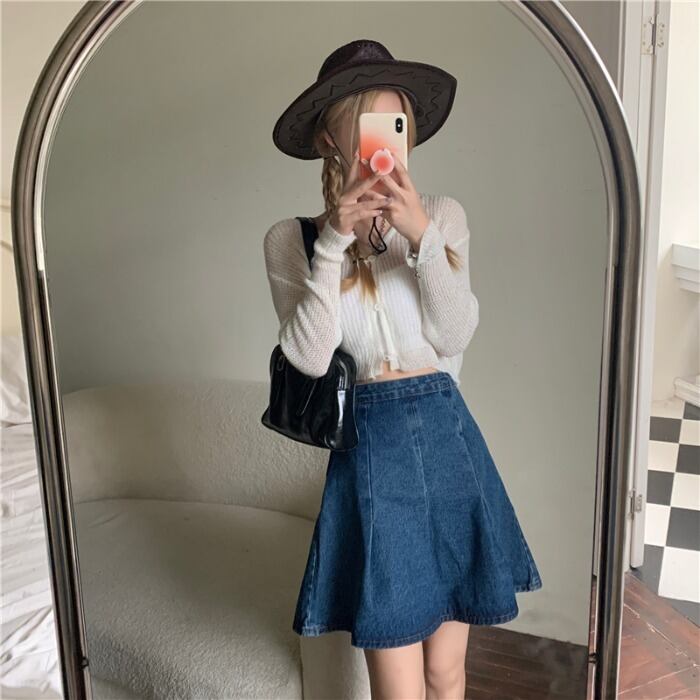 スカート サマースタンダードハイウェスト薄手Aラインショート レトロ 夏物 kumikum14806506099