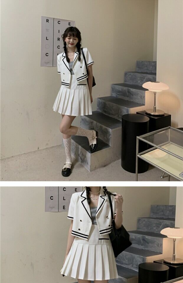 スタイルホワイトショートジャケット サマープリーツスカート 夏物 kumikum86798681691