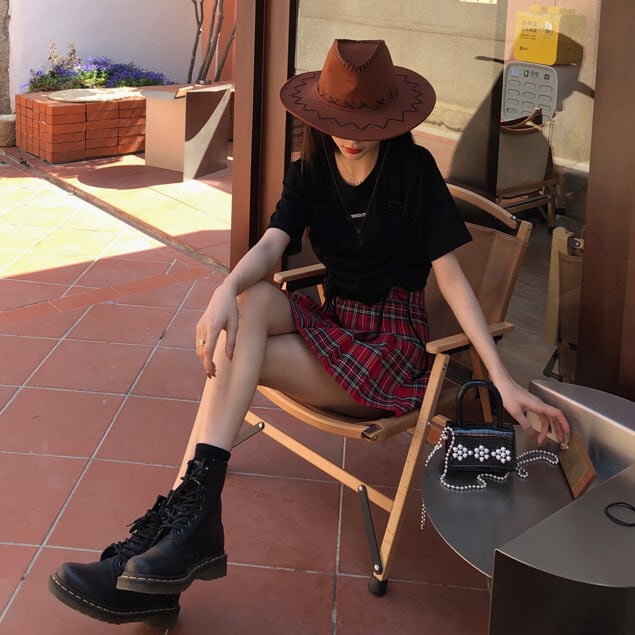 スタイルショートギャザートップス サマースタンダード格子柄スカート レトロ 夏物 kumikum17492135304