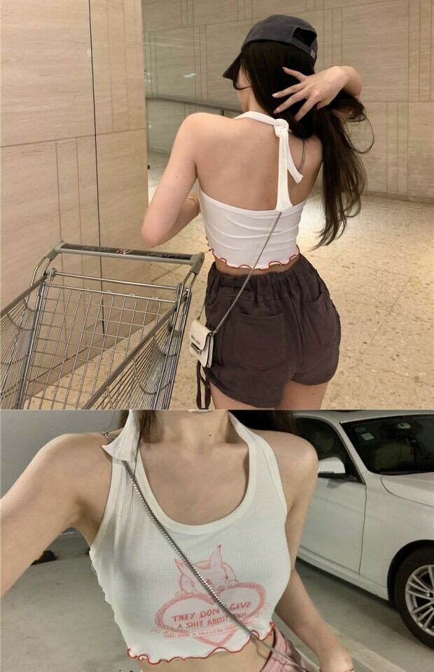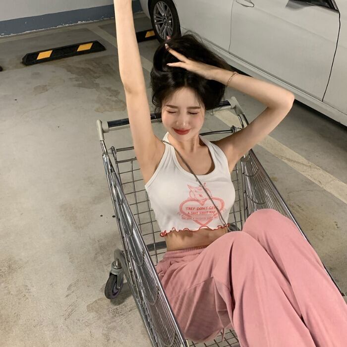 プリントサマースリム薄手シャツ ショートレッドトップス 夏物 kumikum75172408305