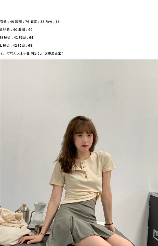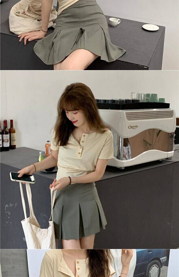 カジュアルソリッド カラーTシャツ トップス サマープリーツスカート 夏物 ソリッドカラー kumikum36249715693