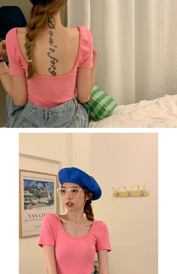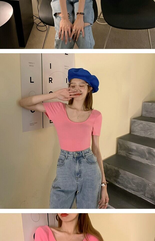 ソリッド カラーシャツ レディースサマーショートTシャツ バックレストップス 夏物 ソリッドカラー kumikum41816335010