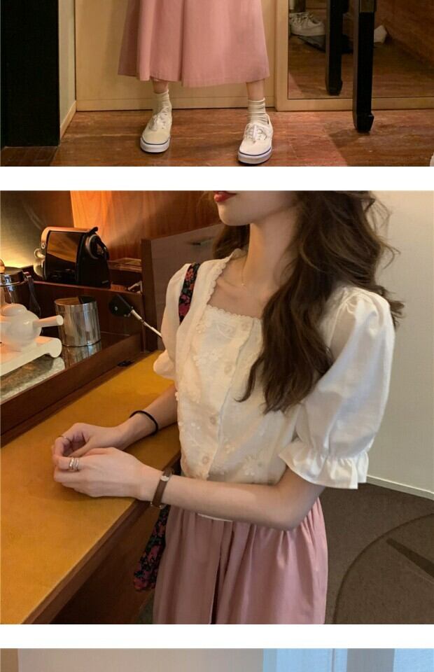 シャツ レディースサマーカラースリーブカーディガンスタイルスリムショートトップス 夏物 スクウェア kumikum22083097469