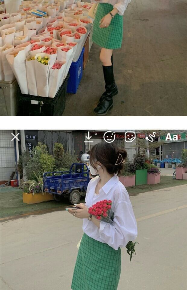 スタイル薄手ルーズシャツ トップス サマー格子柄スカート 夏物 kumikum90227094067