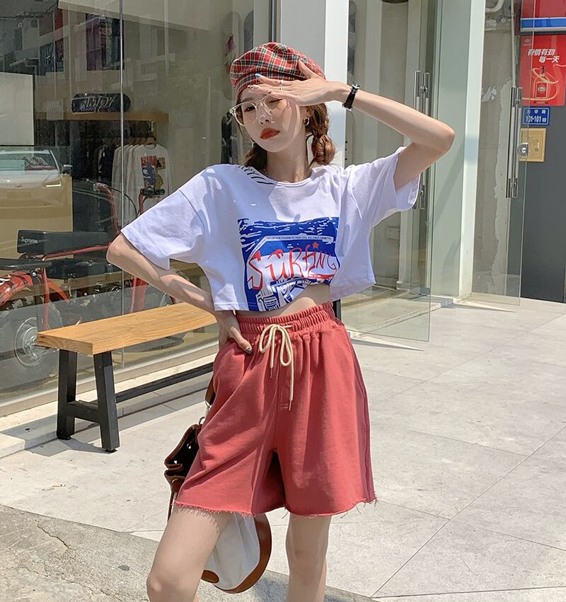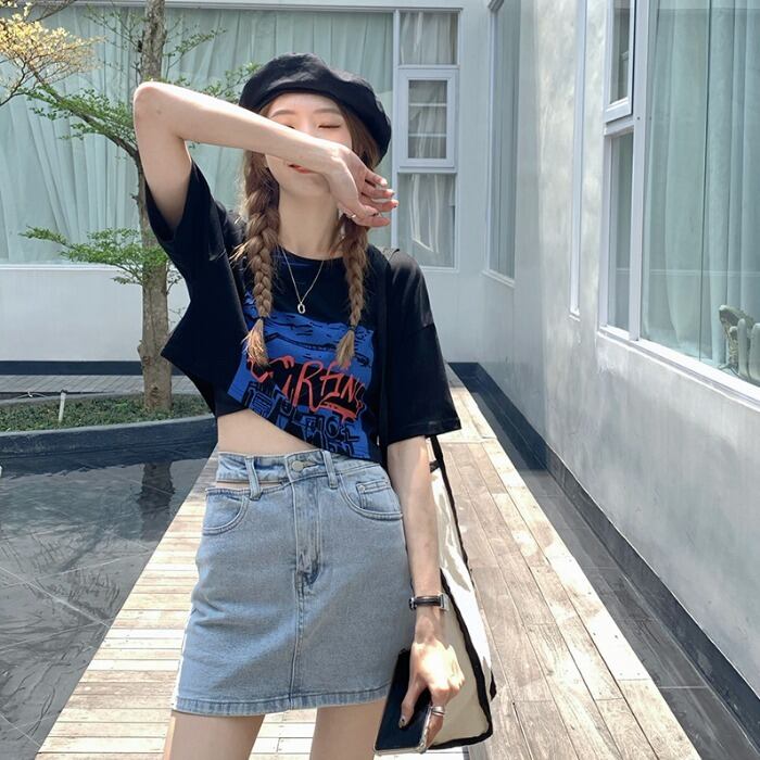 ルーズラウンドネックショートTシャツ サマートップス 夏物 Oネック ステッチ kumikum25359190501