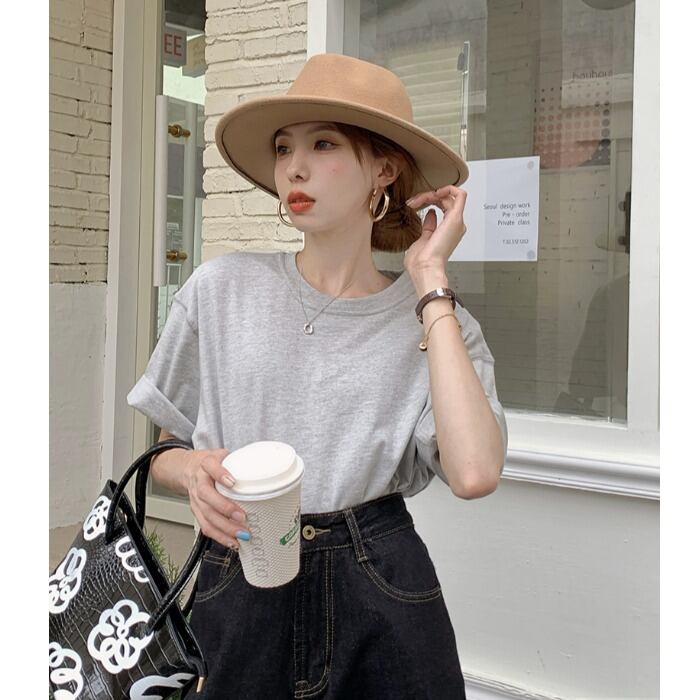 ソリッド カラーラウンドネックジャケット サマールーズTシャツ 夏物 Oネック ソリッドカラー kumikum75359940657