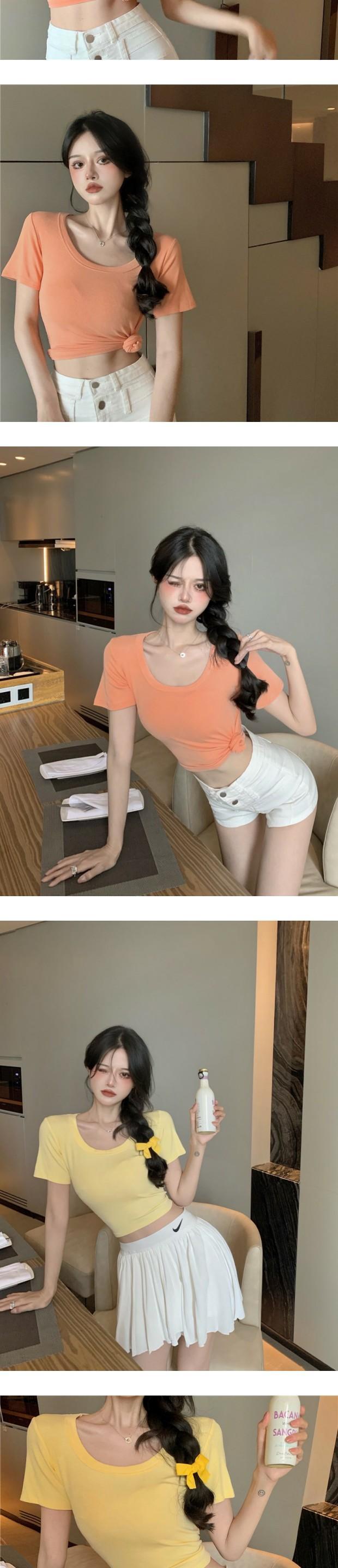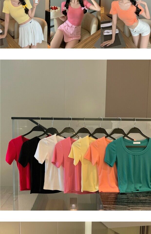 ショートクロップトップ トップス サマーソリッド カラーシャツ Tシャツ 夏物 ソリッドカラー kumikum29546658270