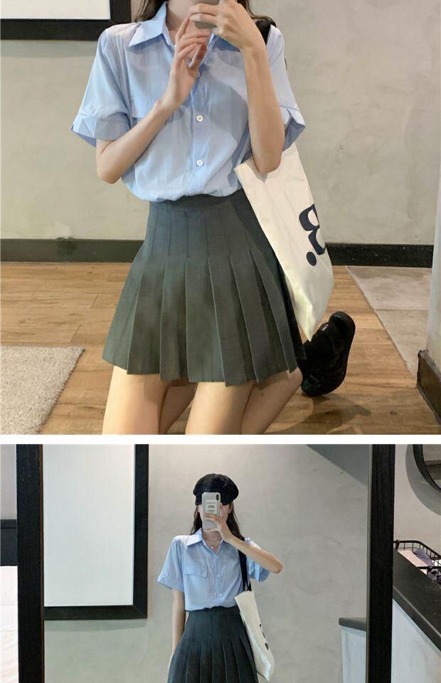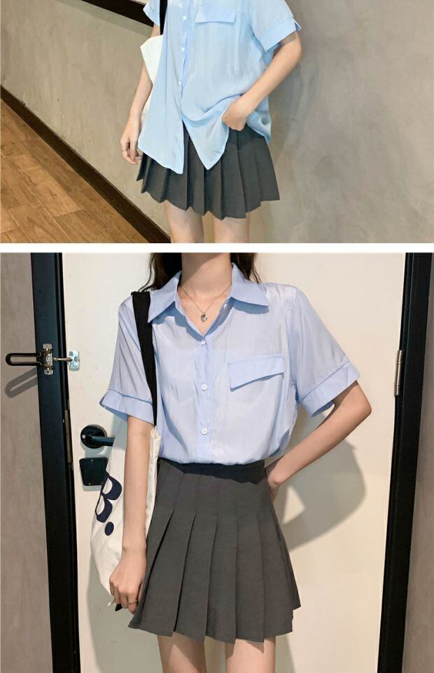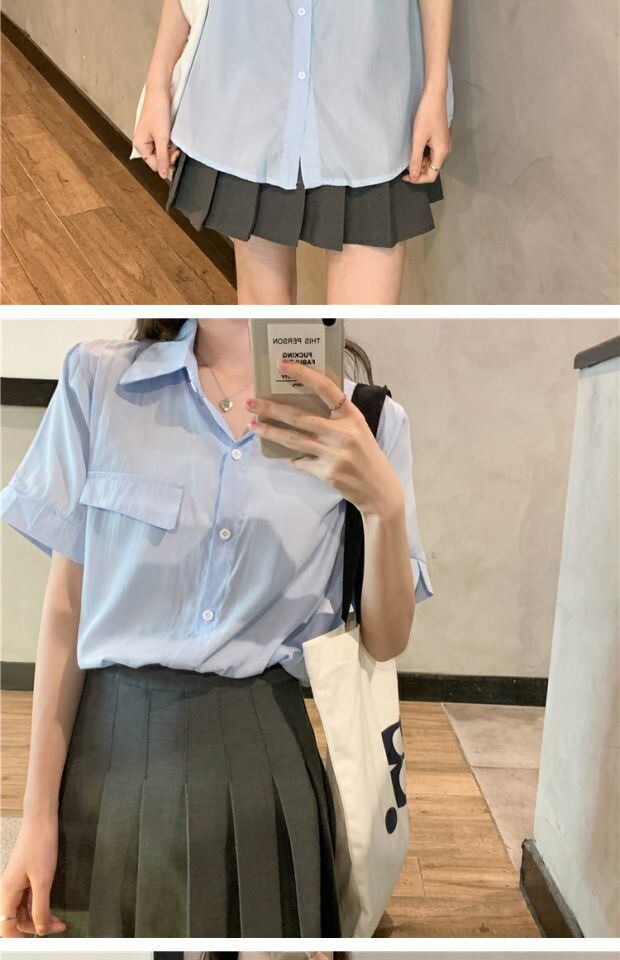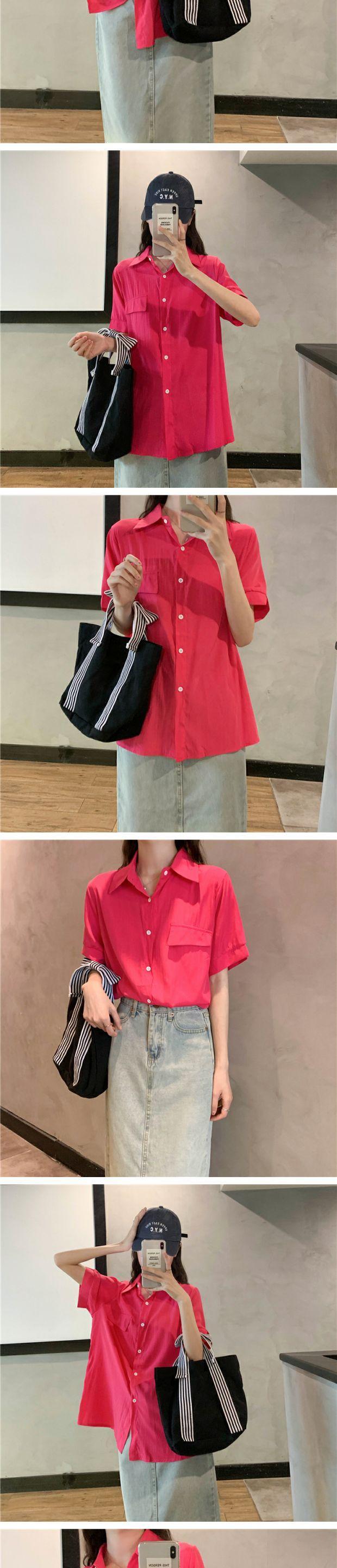 カラートップス レディースサマースタイルルーズ薄手半袖スリーブシャツ ショート ハーフスリーブ 夏物 kumikum21037110395