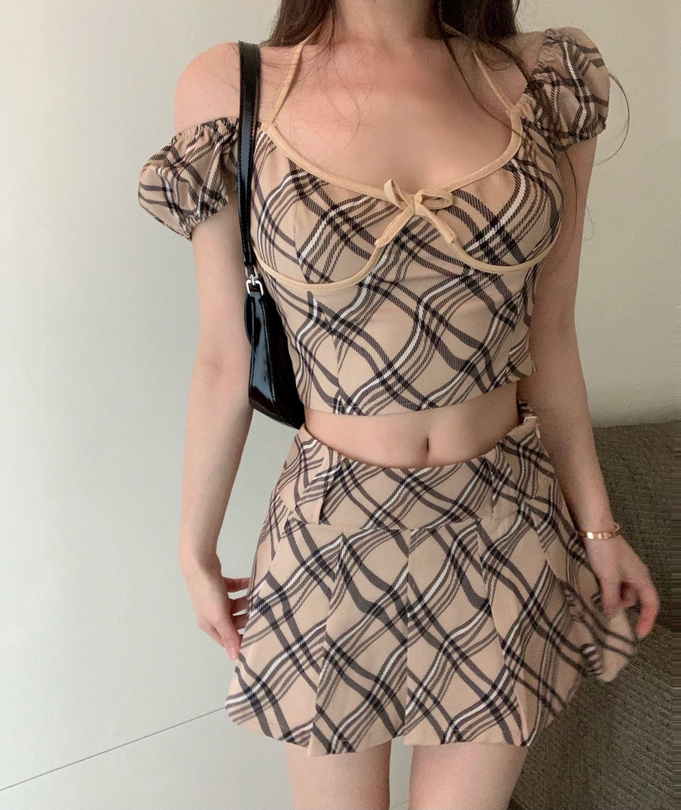 格子柄プリーツスカート サマーショートトップス 夏物 スクウェア kumikum56224342082