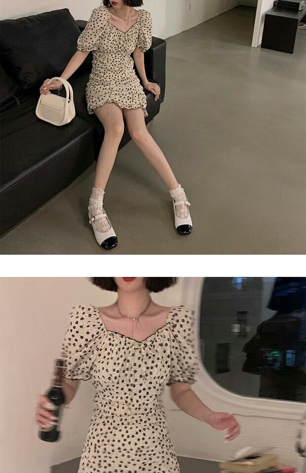 スタンダードシフォンフローラルスカート サマースリーブドレス スリムAライン レトロ 夏物 花柄 kumikum56767841395