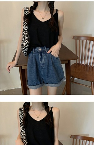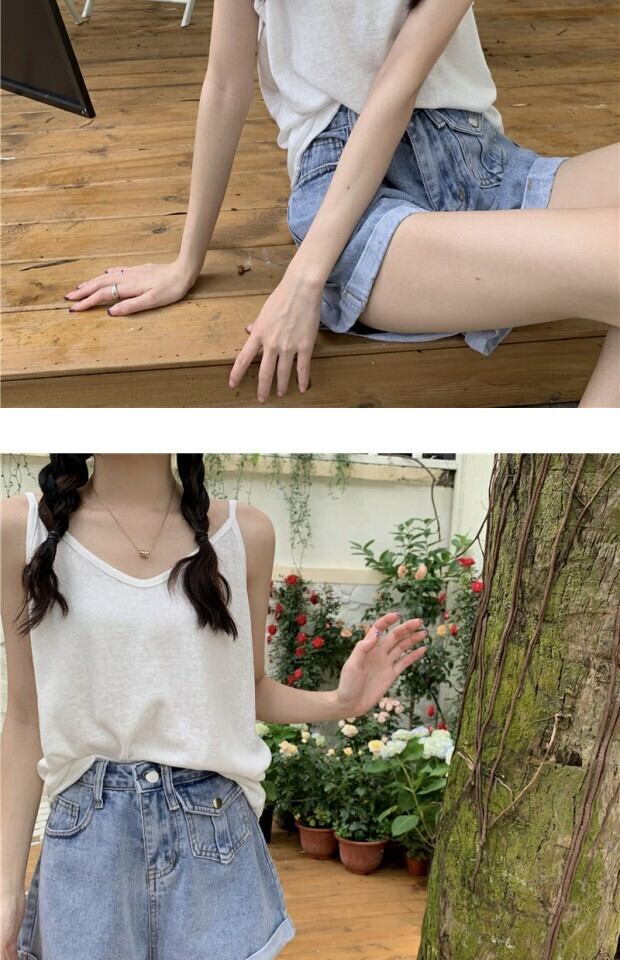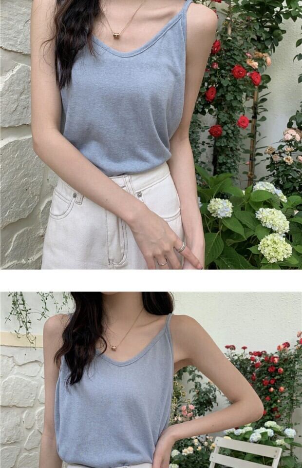 ソリッド カラーサマールーズVネックノースリーブシャツ トップス 夏物 ソリッドカラー kumikum57033080434