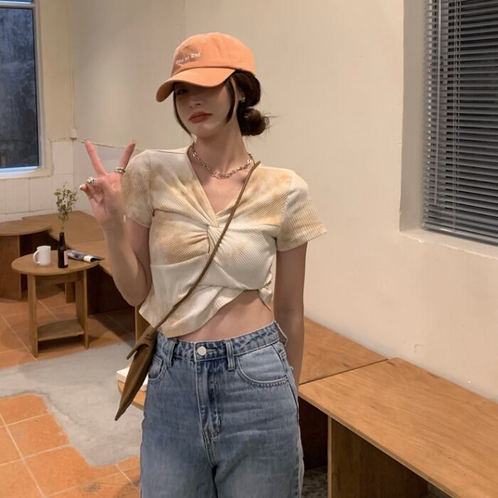 ショートTシャツ サマースリムトップス 夏物 kumikum3109814245