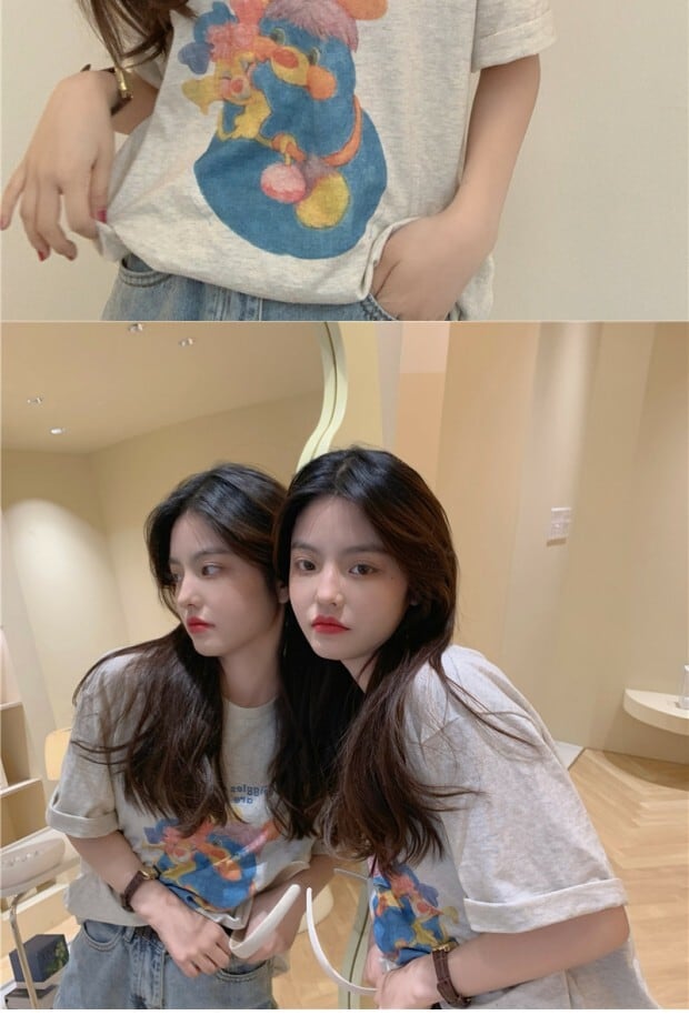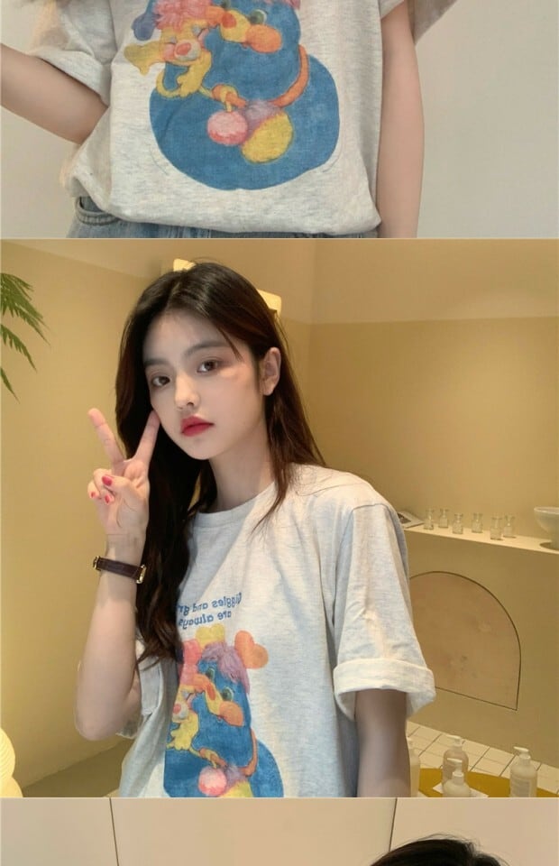 プリント柄Tシャツ サマールーズラウンドネックトップス 夏物 Oネック kumikum49166602129