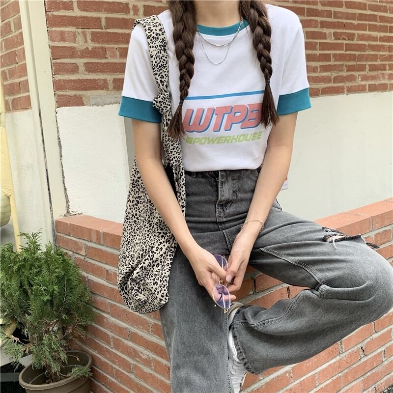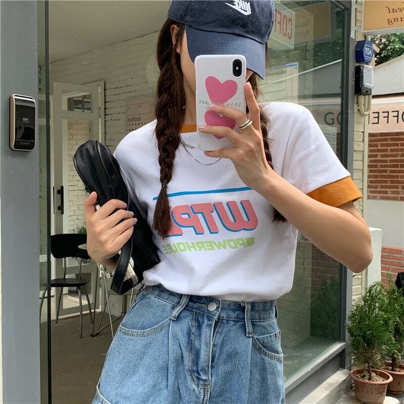 Tシャツ シャツ トップス レディースサマーレッドラウンドネックカラープリント 夏物 Oネック kumikum48593748727