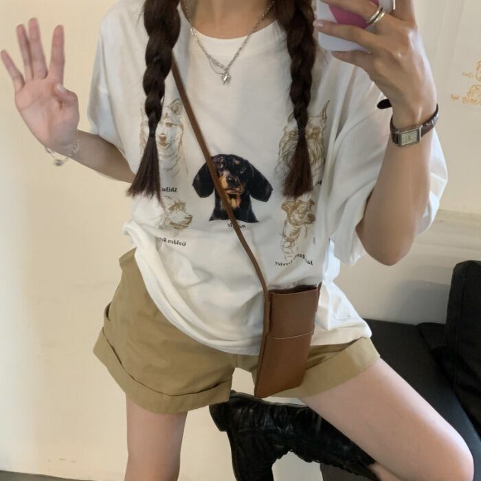 プリント柄Tシャツ サマールーズカジュアルトップス 大人ガーリー スウィート キュート 夏物 kumikum71113640916