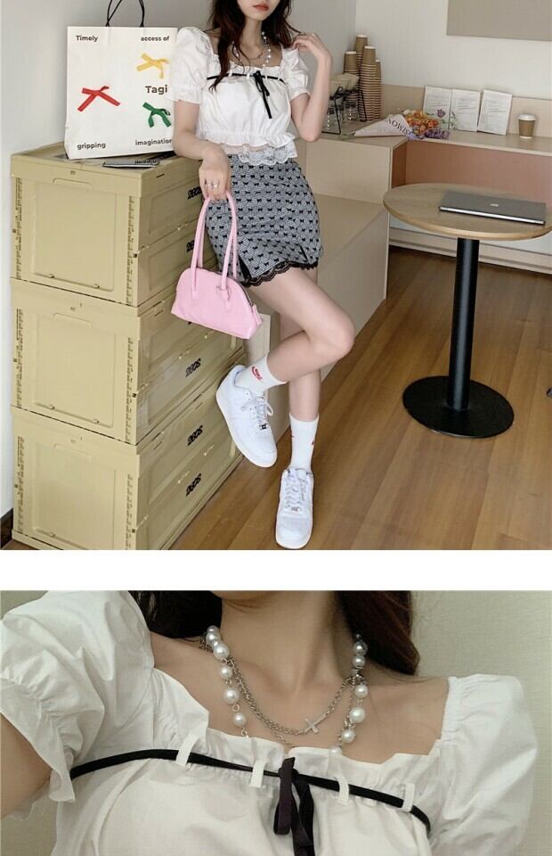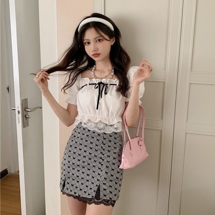 サマーショートレースシャツ スカート 夏物 レースアップ ピュア kumikum87729845782