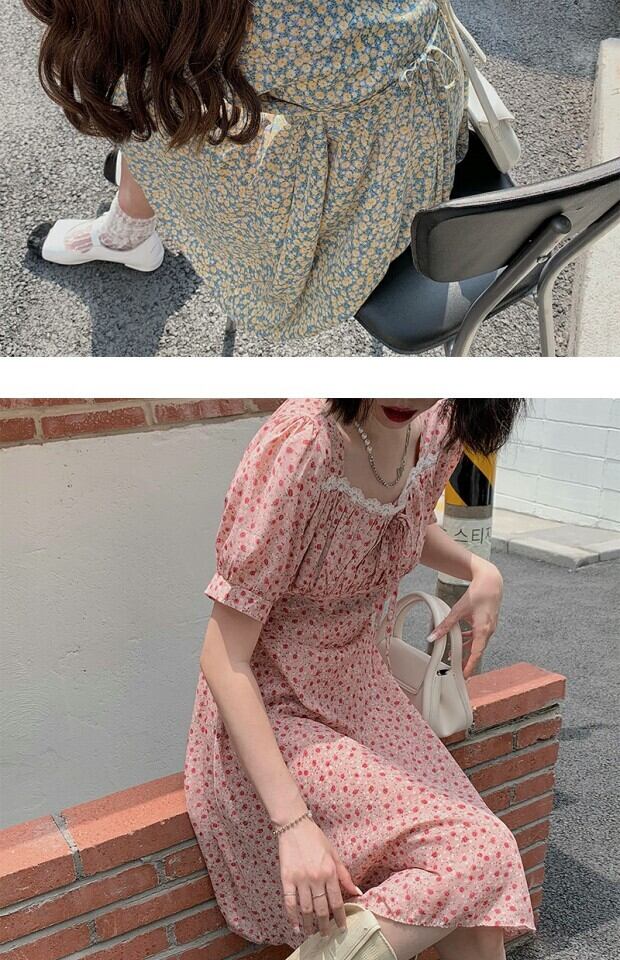 シフォンドレス サマーカラーレースバンド薄手Aラインスカート 夏物 スクウェア kumikum26461802389