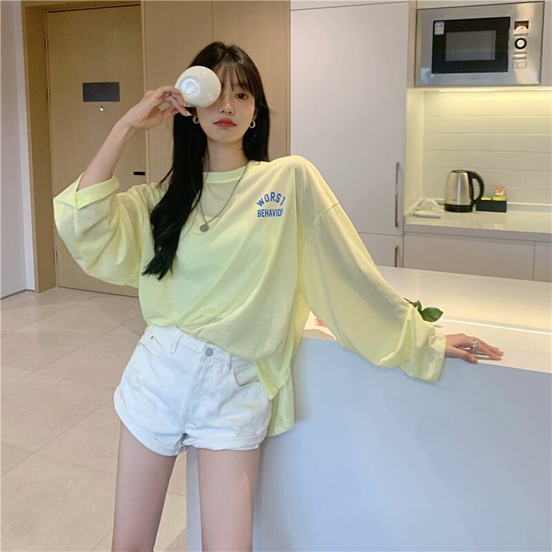 Tシャツ サマールーズブラウス トップス スタイル薄手 ロング 夏物 kumikum18561354680