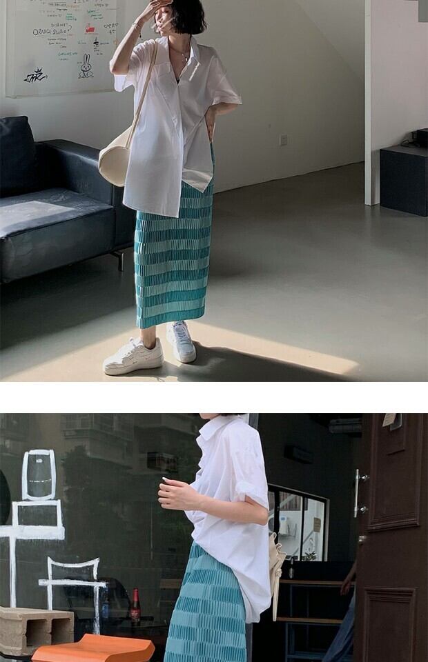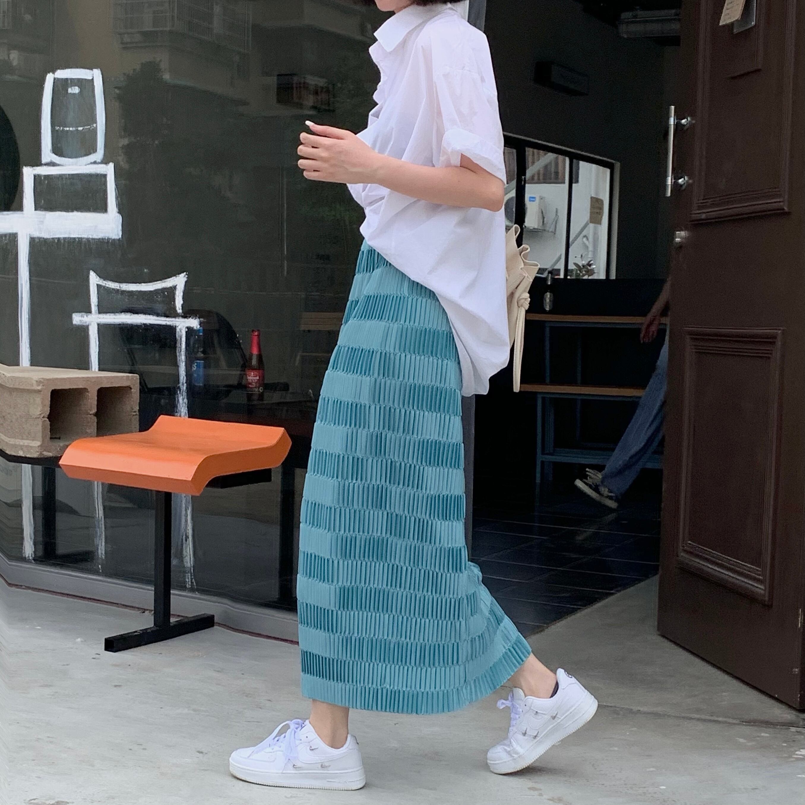 スカート サマー薄手ハイウェストAラインソリッド カラーロング 夏物 ソリッドカラー kumikum27913584651