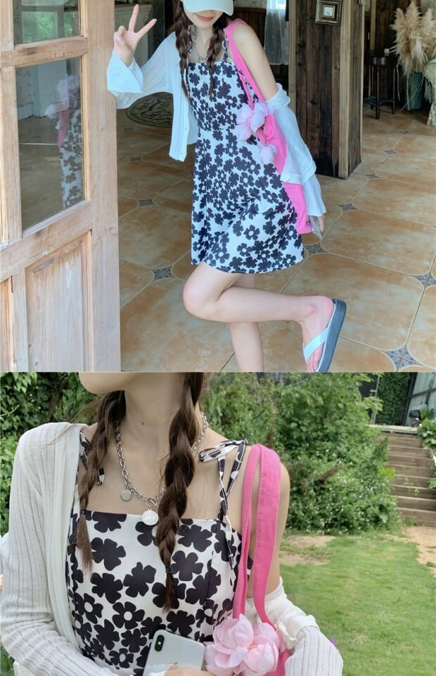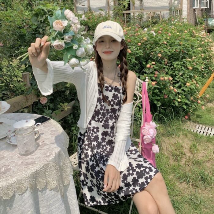 スタイルブラックフローラルドレス サマーニットカーディガン 夏物 花柄 kumikum72401568346