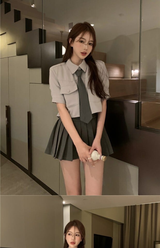 色:ネクタイと灰色のシャツ,グレーのプリーツスカートが光漏れを防ぎます