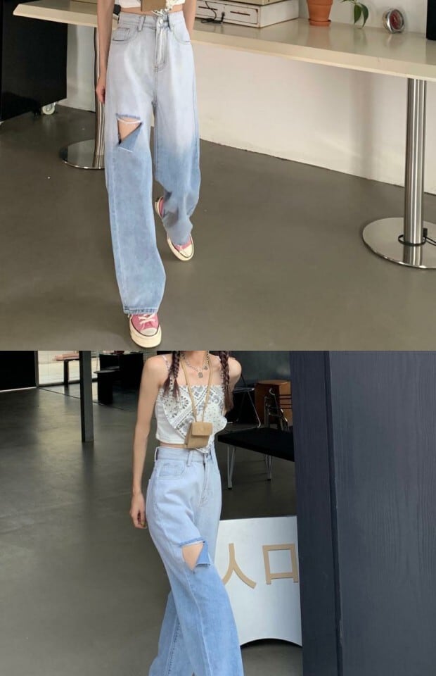 ジーンズ サマースタンダードルーズパンツ 薄手ロング レトロ 夏物 kumikum82282776545
