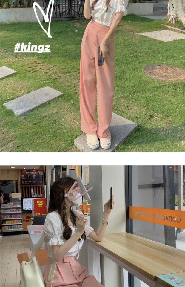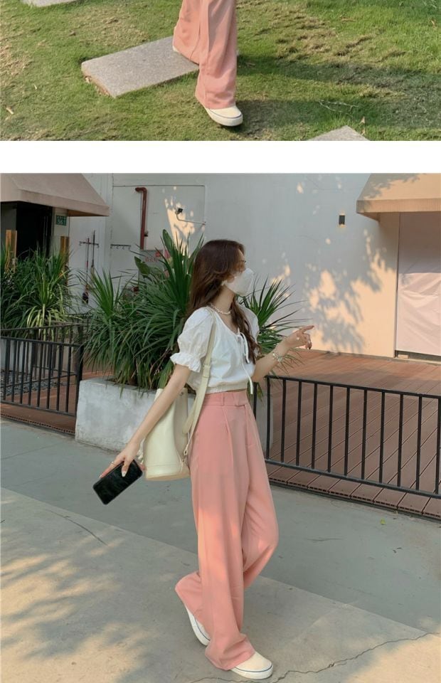 パンツ ハイウェストウェストサマールーズ薄手カジュアル ピンク 夏物 kumikum60194086373