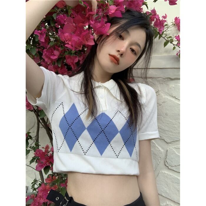 スタイルショートTシャツ サマースリムニットトップス 夏物 kumikum1866622327