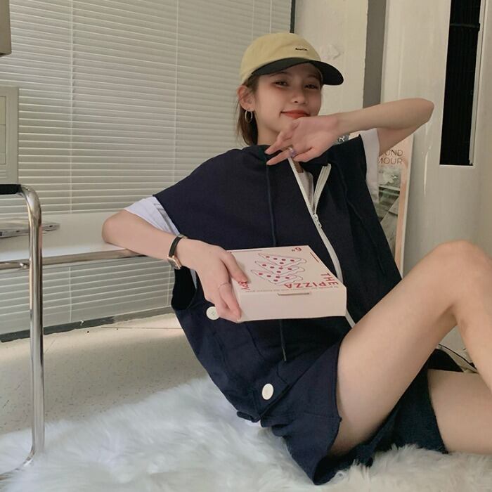 カジュアルサマーノースリーブカーディガンジャケット ルーズショーツ 夏物 ブルマー kumikum55097138465