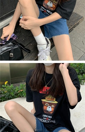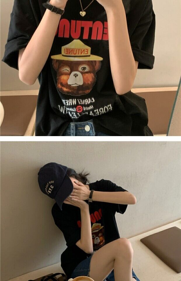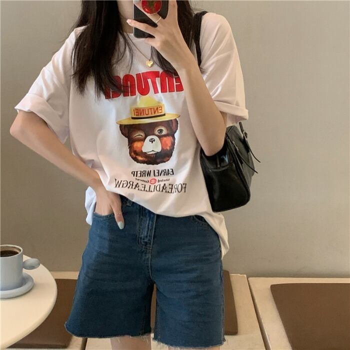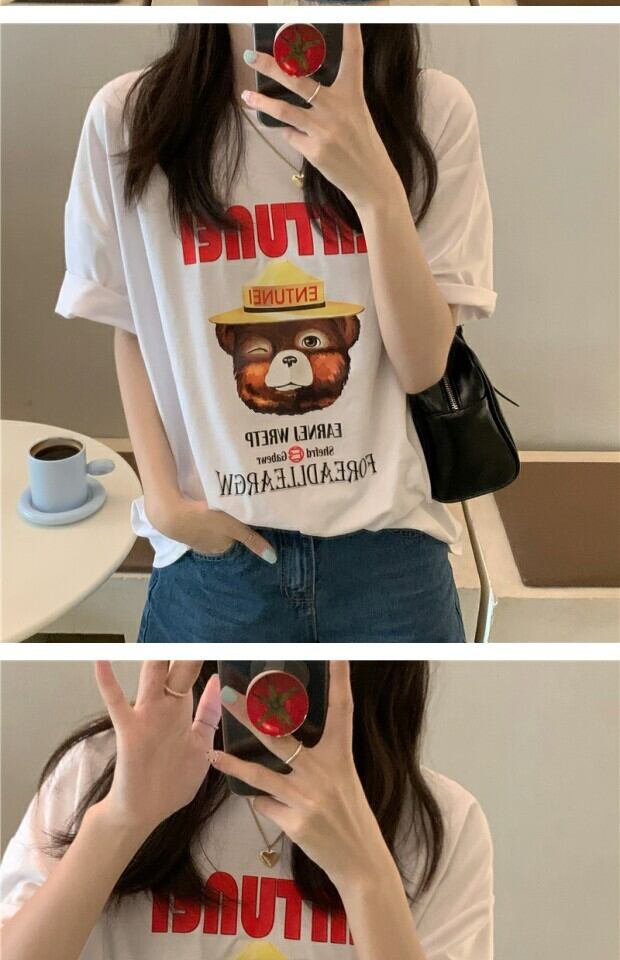 プリント柄Tシャツ シャツ サマールーズカジュアルラウンドネックトップス 大人ガーリー スウィート キュート 夏物 Oネック kumikum30400976908