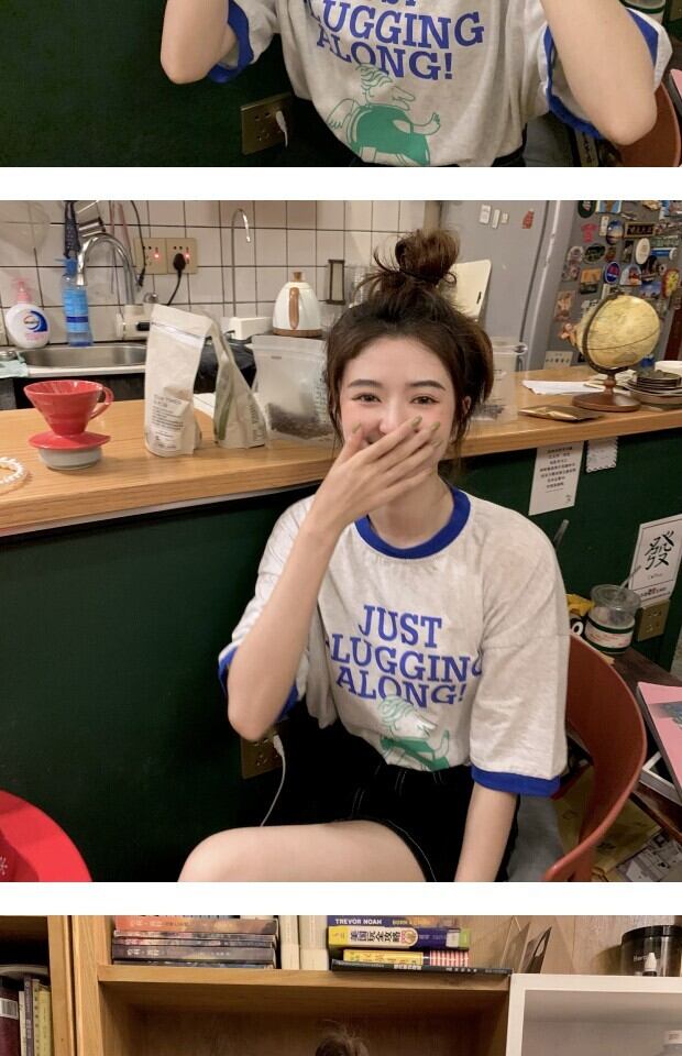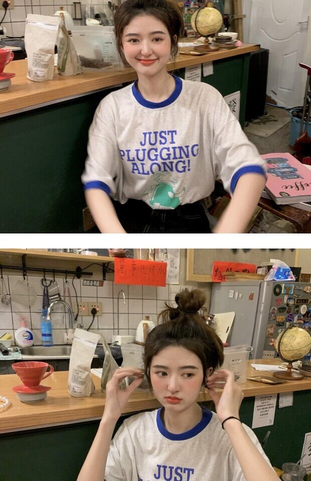 プリントTシャツ レディースサマールーズカラーラウンドネックトップス 夏物 Oネック kumikum53669643628