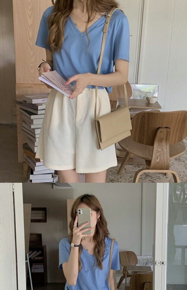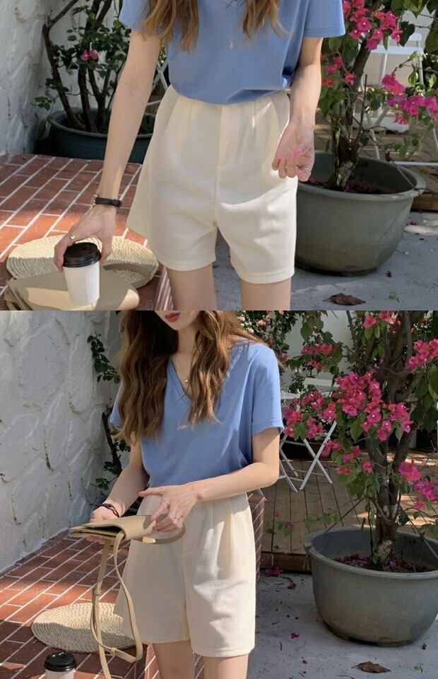 色:VネックTシャツ,アプリコットショーツ