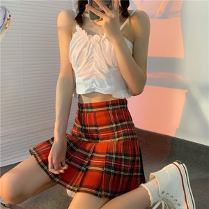 ショートホワイトプリーツタンクトップトップス 格子柄スカート kumikum35424812290