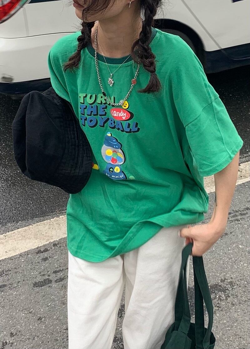 スタイルラウンドネックカラープリントTシャツ シャツ レディースサマースタンダードルーズトップス レトロ かわいい 夏物 Oネック kumikum2221416532