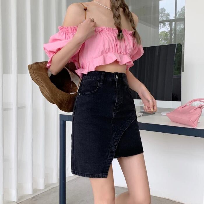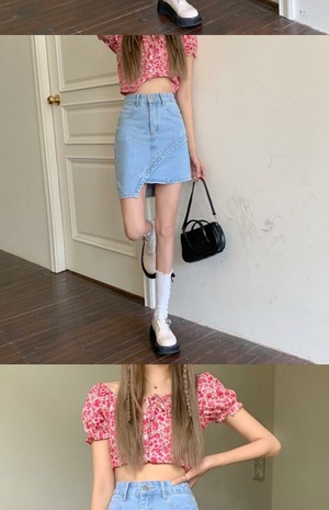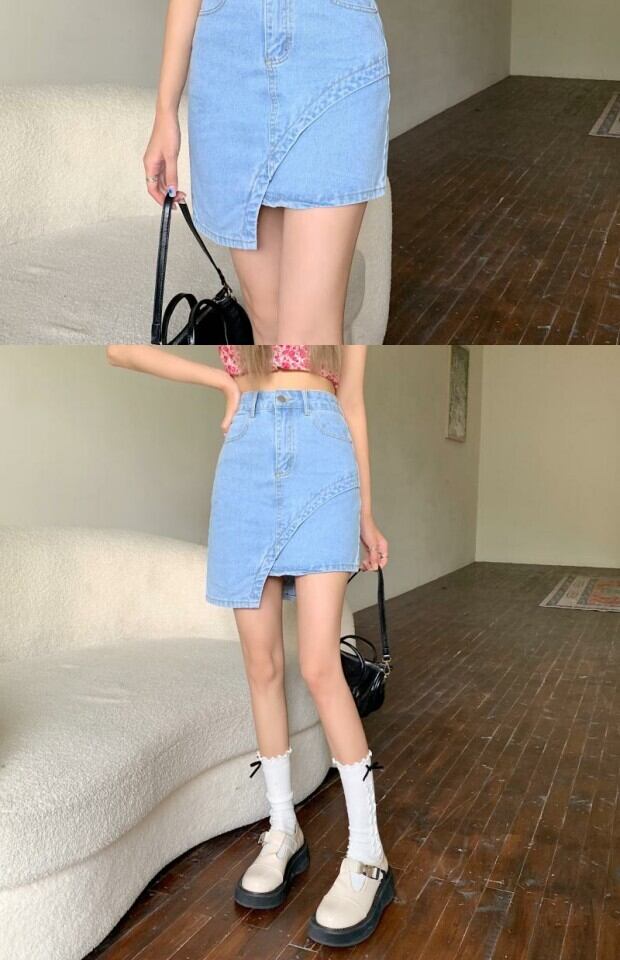 サマースカート ハイウェスト薄手スタンダード レトロ 夏物 kumikum63476905285