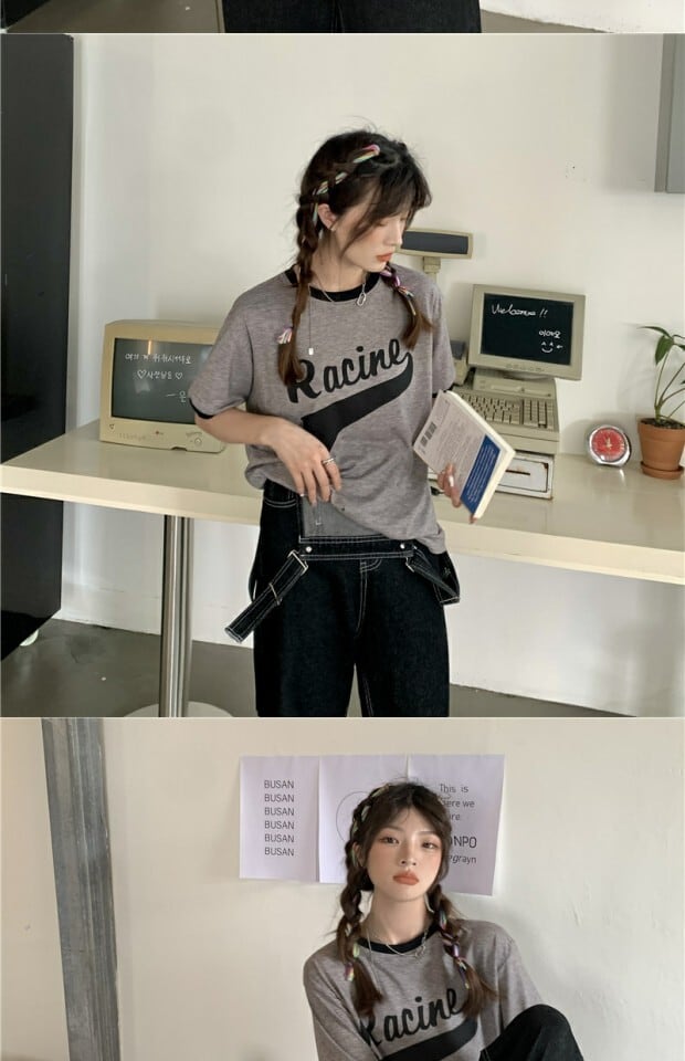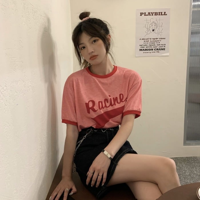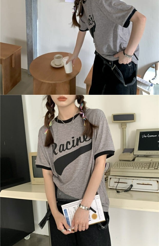 スタイルカラーラウンドネックTシャツ サマールーズカジュアルトップス かわいい 夏物 Oネック kumikum35382444536
