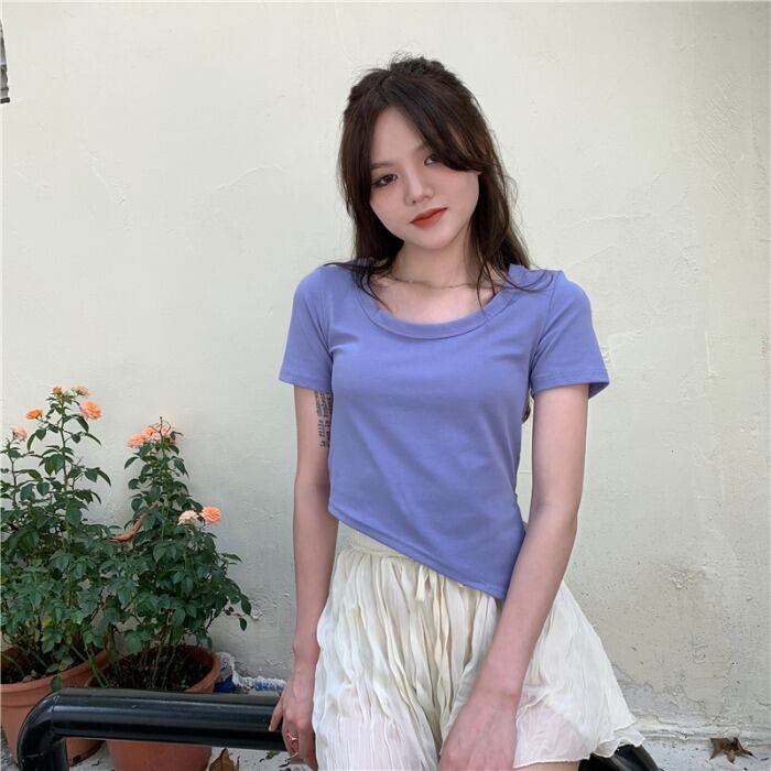ホワイトショートTシャツ サマートップス 夏物 kumikum45852722401