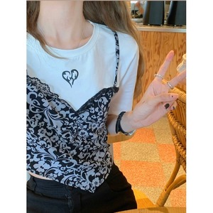 スタンダードTシャツ サマーレッドショートトップス レトロ 夏物 ステッチ kumikum16957398802