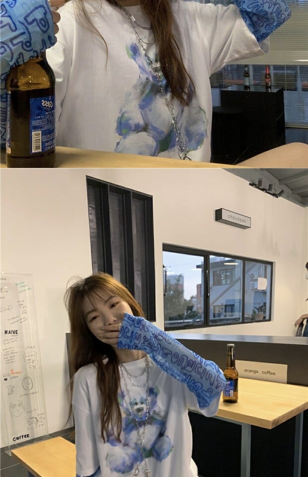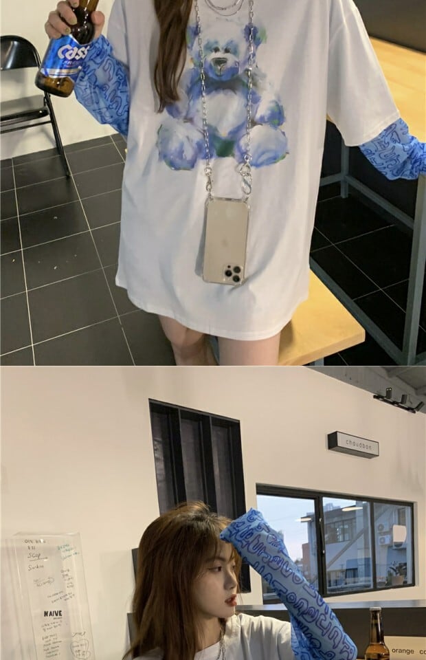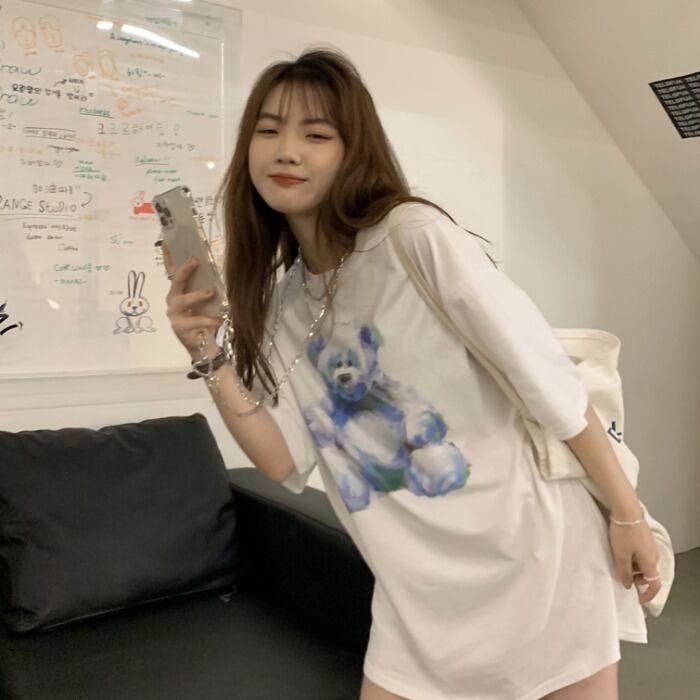 プリント柄Tシャツ サマースタイルロングルーズトップス かわいい 夏物 kumikum95720609151