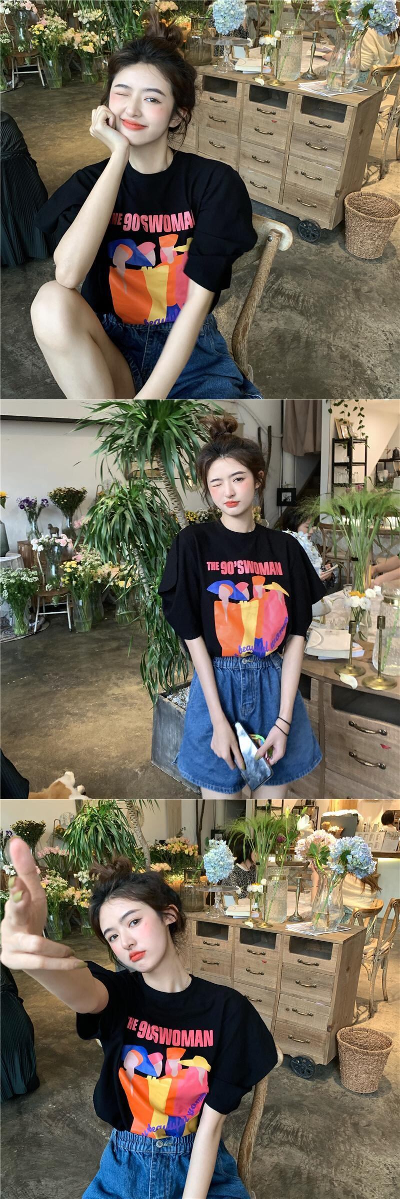 スリーブTシャツ シャツ トップス サマープリント柄ルーズ 夏物 kumikum77868742621